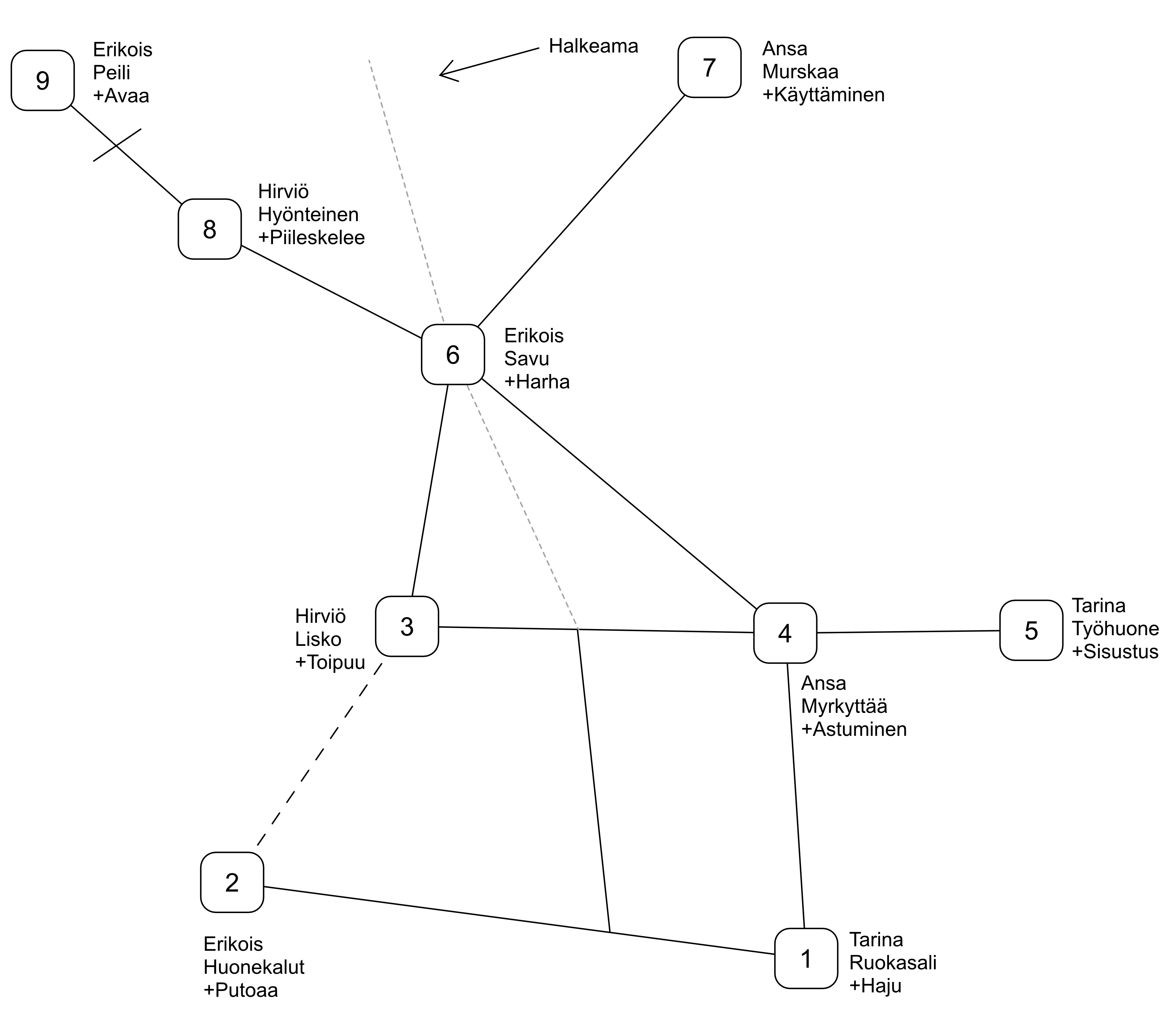 - Savu: Maagista, ei päästä ääntä tai hajua eikä se haihdu tavallisin keinoin. Tämän huoneen uloskäynnit ovat hämärän peitossa.